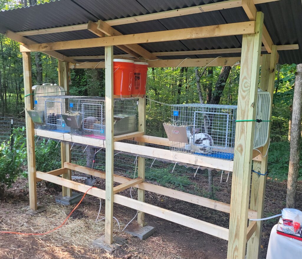 For the cages, we did a lot of research, and found KW Cages.  They have a great reputation for using quality materials, and assembling sturdy cages. We watched a lot of videos, and read a lot of articles, considered building our own, and decided that although there were cheaper options out there, we were in this for the long haul and were willing to pay for quality.  After a lot of comparison shopping and reading of reviews, we knew that cages from KW would be a one and done purchase, and that with a little care these cages would last us a long time.  They use galvanized wire (which is important when dealing with rabbit urine), and there was upgrade options for both a heavier gauge bottom wire, and “baby saver” sides.  The heavier bottom is necessary for a heavier rabbit, especially if the cages are suspended, and the baby saver sides will help to keep your kits from breaking any legs.